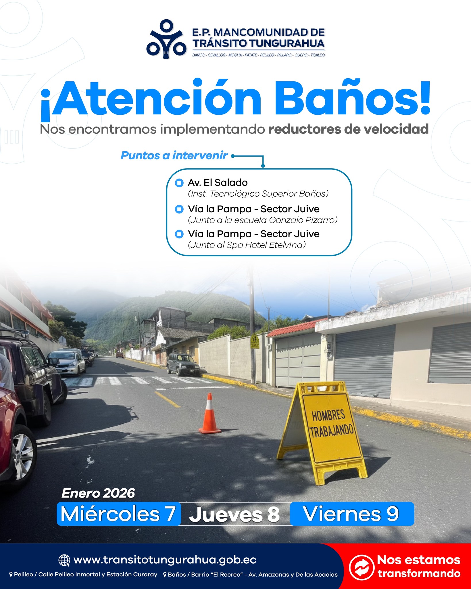 Se estarán implementando reductores de velocidad este 7, 8 y 9 de enero de 2026 en los siguientes puntos: