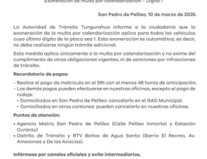 La Autoridad de Tránsito Tungurahua informa que la multa por calendarización queda exonerada automáticamente para tod ...