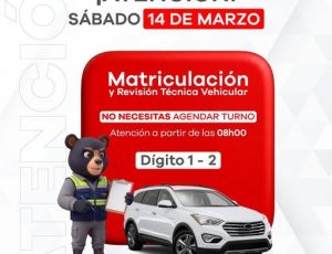 ¡Atención ciudadanía! Este sábado 14 de marzo también estaremos atendiendo en Matriculación y Revisión Técnica Vehicular.