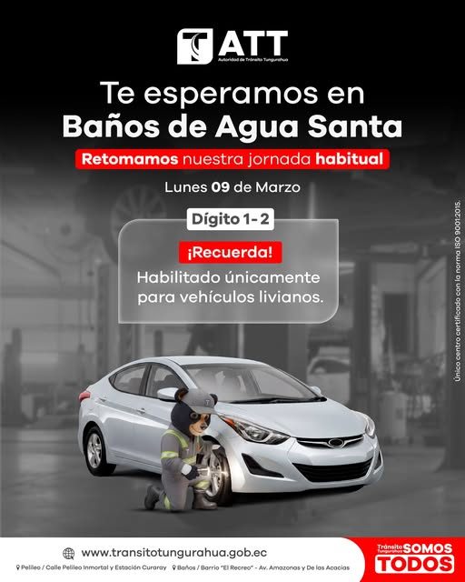 #BañosDeAguaSanta#MatriculaciónVehicular#VehículosLivianos#MovilidadSegura